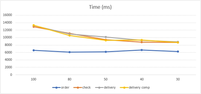 fillfactor를 100, 80, 50, 40, 30으로 변경해 가면서 테스트를 진행 함.